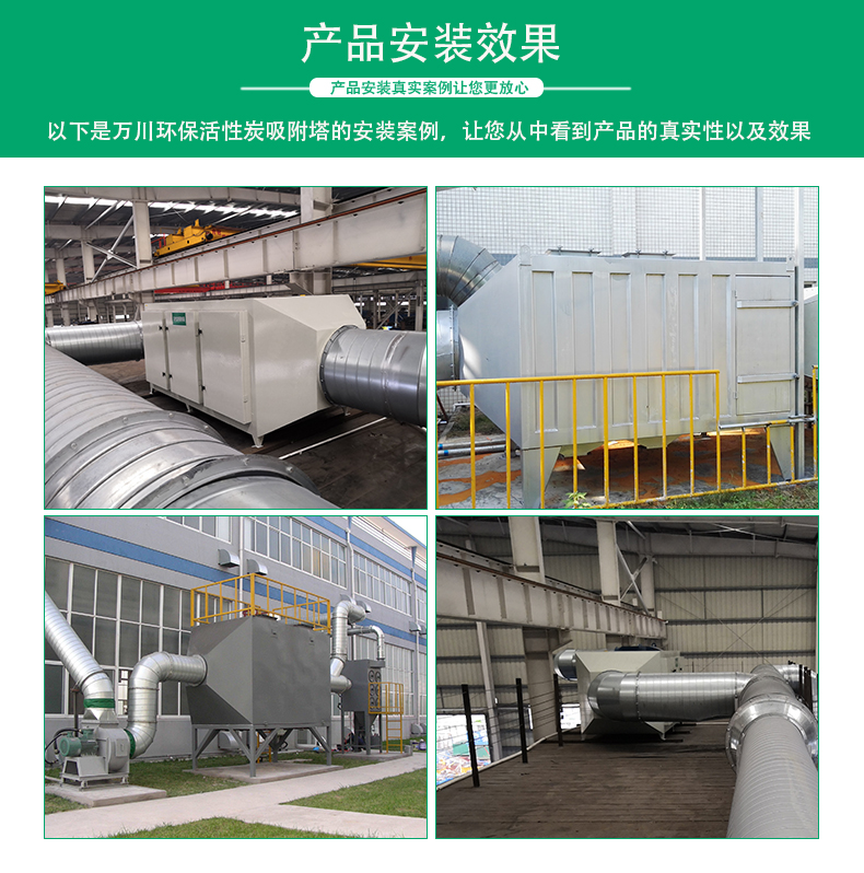 活性炭吸附裝置整體可采用PP、不銹鋼、鐵等材料制成,采用抽屜式的加炭方式,操作方便,占地面積小,安裝好即可使用,無需人工看管,做好清洗與換炭工作即可。