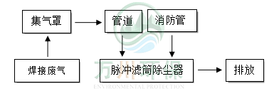 工程師根據(jù)現(xiàn)場(chǎng)焊接煙塵性質(zhì)粒徑現(xiàn)場(chǎng)工況等因素考量,故采用脈沖濾筒除塵器作為處理設(shè)備