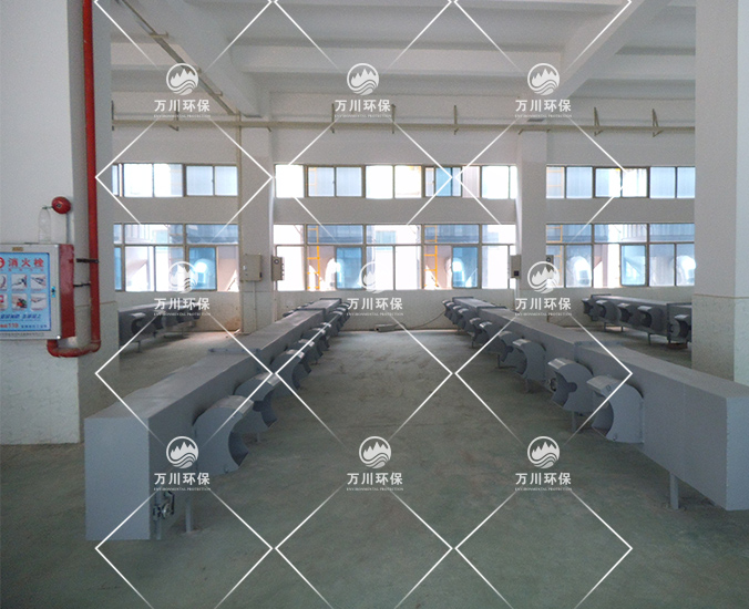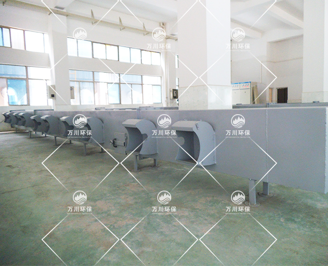 因生產打磨工藝品時會產生大量的粉塵氣體,秉承對員工生產環境負責的態度,美景實業在對比多家廢氣處理廠家后,最終決定采用萬川環保廢氣處理設備--脈沖布袋除塵器。